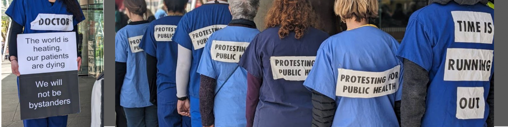 “The greatest health threat to all of us is the unfolding climate catastrophe. If we do not stand up to the fossil fuel companies and the politicians who enable them, we will have failed our patients”.